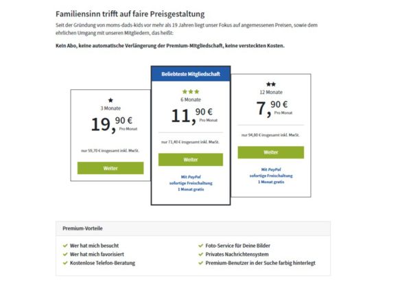 Moms Dads Kids teilt das Los vieler Nischenseiten: Die Anzahl der User ist leider noch gering, sodass du nicht unbedingt damit rechnen kannst, in deiner direkten Nachbarschaft einen Partner zu finden. In einer Grossstadt hingegen stehen deine Chancen nicht schlecht. Auf der anderen Seite meinen es die angemeldeten Nutzer ehrlich, denn nur zahlende Mitglieder können dir schreiben. Die Partnersuche dauert vielleicht ein wenig länger, doch insgesamt stehen deine Chancen auch bei diesem kleinen Portal nicht schlecht.